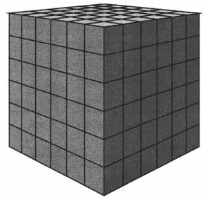На рисунке ниже показана одна грань куба с обозначенными кубиками, у которых окрашена только одна сторона. Как видно из рисунка, число таких кубиков на одной грани куба, ровно 16 штук. Следовательно, на 6 гранях куба таких кубиков будет 16∙6=96.